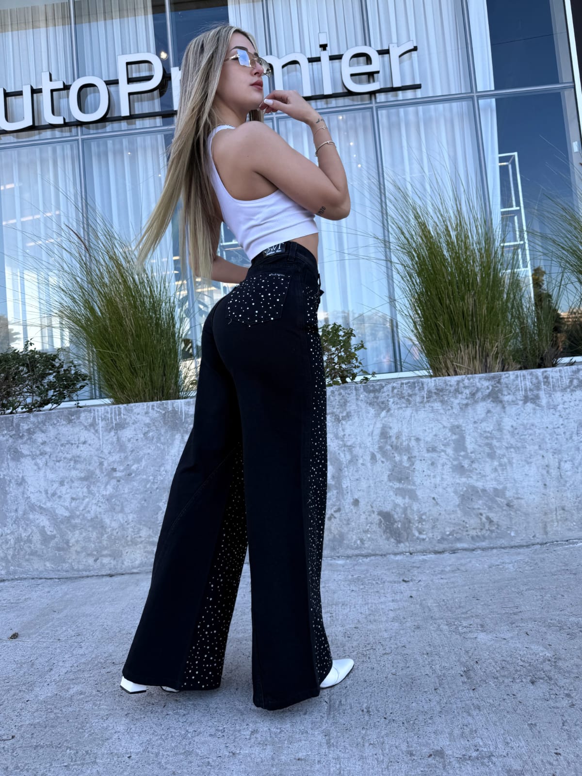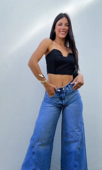 👖 Calce: Maxi wide leg tiro alto – pierna ultra amplia con caída fluida